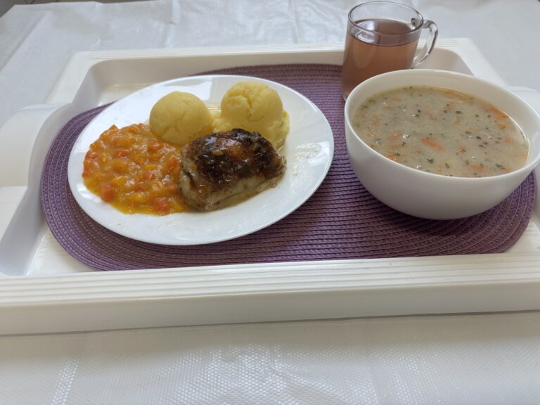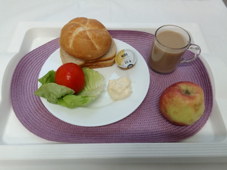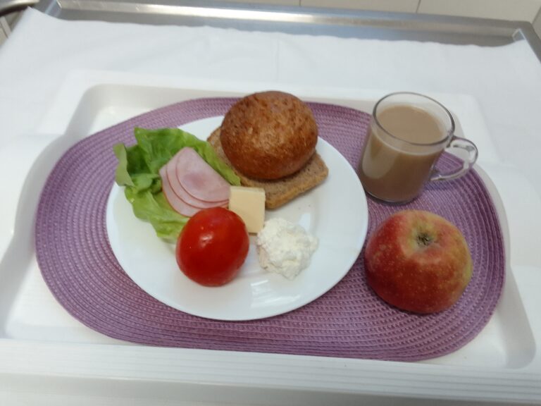 Chleb mieszany pszenno-żytni 75g (GLU PSZ, GLU ŻYT) Bułka pszenno-żytnia 50g 1 szt (GLU PSZ, GLU ŻYT) Masło 83% tł. 20 g (MLE,) Serek homogenizowany o smaku waniliowym 50 g (MLE,) Jabłko 150 g Kawa zbożowa z mlekiem z/c 250ml (MLE, GLU ŻYT, GLU JĘCZ) Miód (25g) 1 szt Pomidor 80 g Sałata zielona 20 g