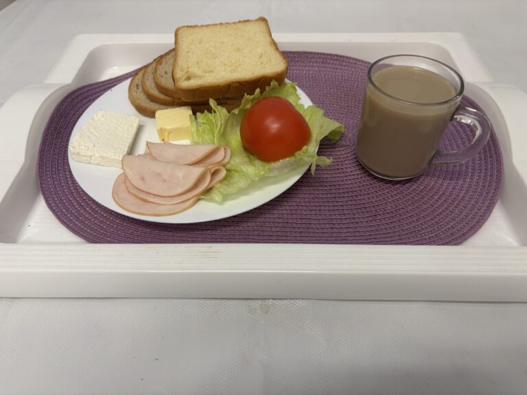 Chleb mieszany pszenno-żytni 100 g (GLU PSZ, GLU ŻYT) Masło 83% tł. 20 g (MLE,) Szynkowa dębowa drobiowa kiełbasa grubo rozdrobniona 50g Pomidor 80 g Kawa zbożowa z mlekiem z/c 250 ml (MLE, GLU ŻYT, GLU JĘCZ,) Ciasto drożdżowe 40 g (GLU PSZ, JAJ, MLE, S02) Pasta z twarogu z natką pietruszki 30 g (MLE,) Sałata lodowa 20 g