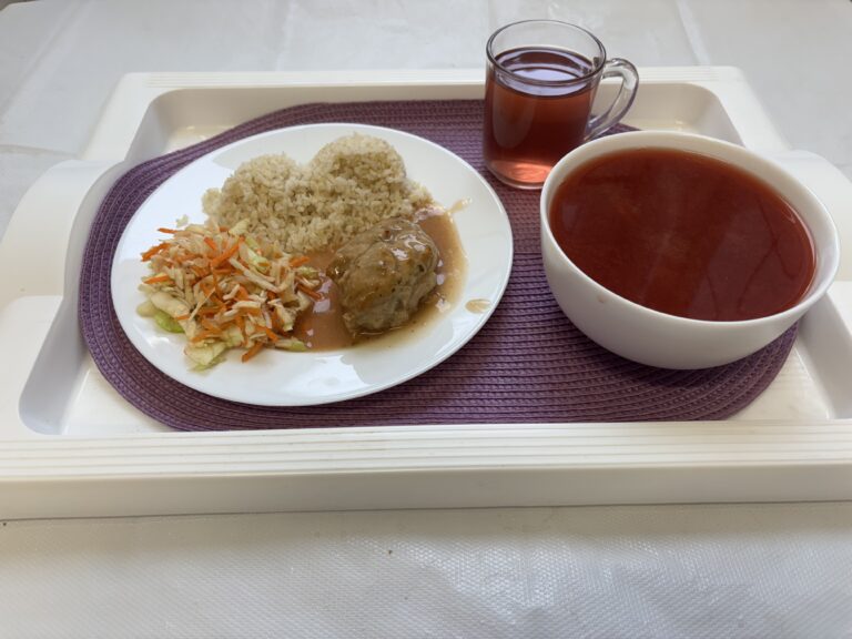 Barszcz czerwony z ziemniakami 400 ml (GLU PSZ, MLE, SEL) Ryż na sypko (brązowy) 200 g Pulpet wieprzowy 80 g (GLU PSZ, JAJ) Sos pomidorowy 100 ml (GLU PSZ,) Surówka z kapusty białej z olejem b/c 150 g Kompot owocowy z jabłkami* b/c 250 ml