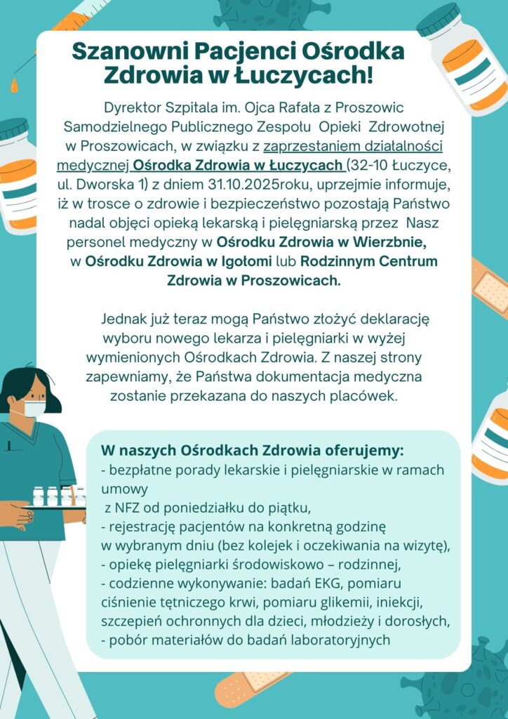 Informacja dla Pacjentów Ośrodka Zdrowia w Łuczycach