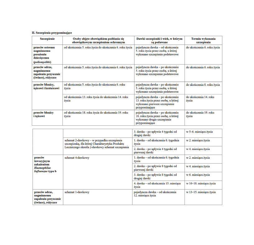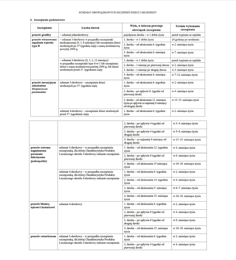 Schemat obowiązkowych szczepień dzieci i młodzieży